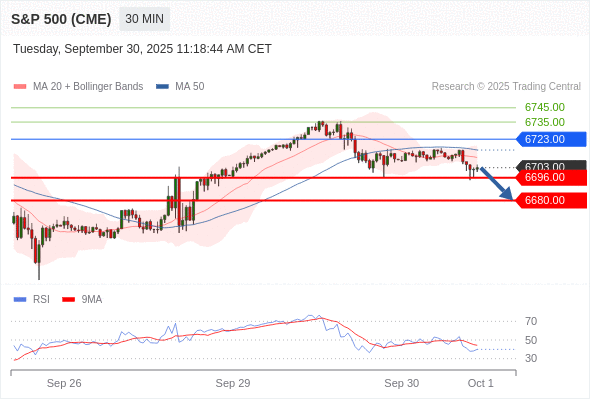 美国标普500指数期货 (Z5) 当日内: 短期关键阻力位在6723.00。