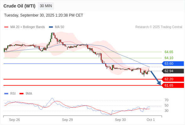 在 63.60 之下,看跌,目标价位为 62.20 ,然后为 61.65 。
