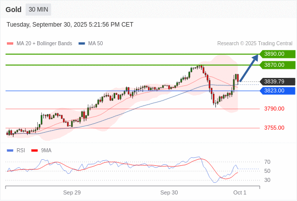 在 3823.00 之上,看涨,目标价位为 3870.00 ,然后为 3890.00 。