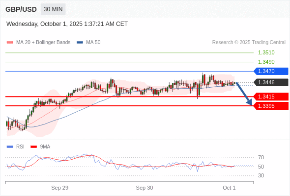 在 1.3470 之下,看跌,目标价位为 1.3415 ,然后为 1.3395 。