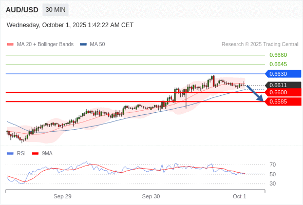 在 0.6630 之下,看跌,目标价位为 0.6600 ,然后为 0.6585 。