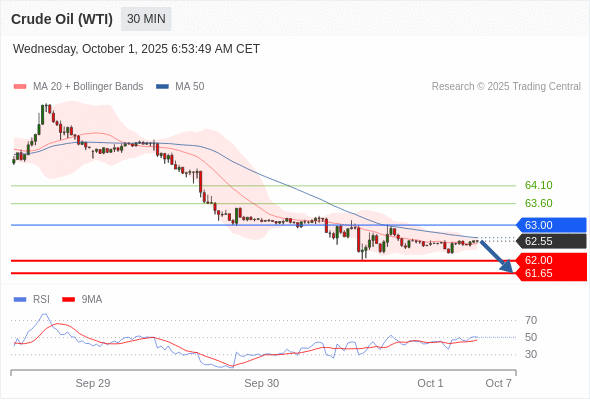 在 63.00 之下,看跌,目标价位为 62.00 ,然后为 61.65 。