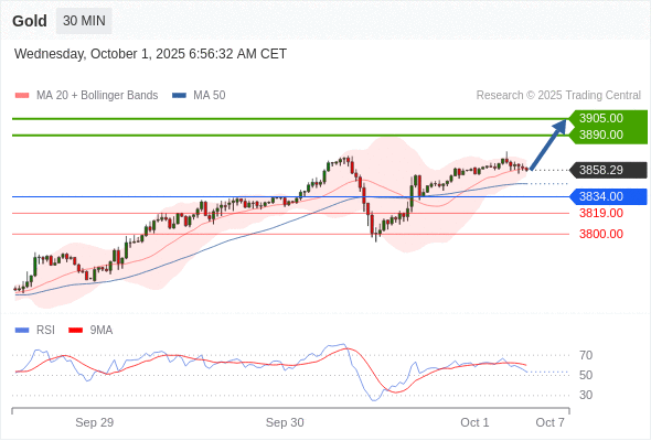 交易策略: 在 3834.00 之上,看涨,目标价位为 3890.00 ,然后为 3905.00 。