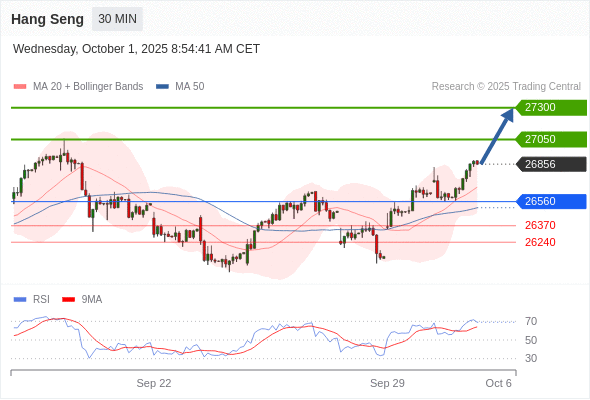 在 26560 之上,看涨,目标价位为 27050 ,然后为 27300 。