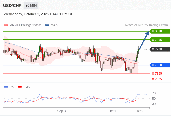 在 0.7950 之上,看涨,目标价位为 0.7995 ,然后为 0.8010 。