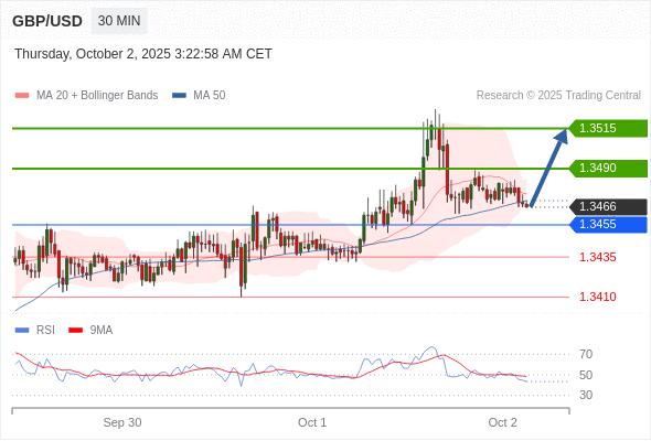 在 1.3455 之上,看涨,目标价位为 1.3490 ,然后为 1.3515 。