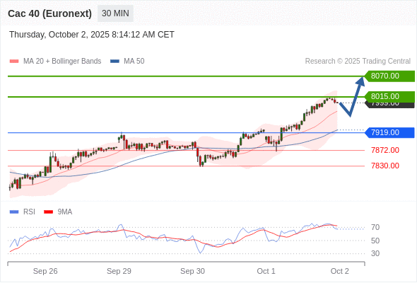 在 7919.00 之上,看涨,目标价位为 8015.00 ,然后为 8070.00 。