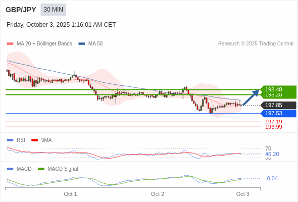 替代方案: 在197.53以下,期待197.19和196.99。