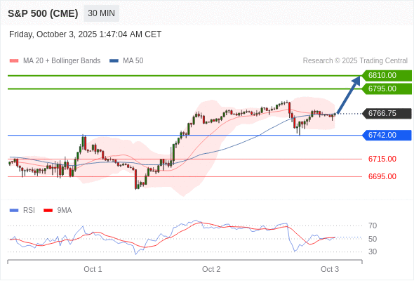 在 6742.00 之上,看涨,目标价位为 6795.00 ,然后为 6810.00 。