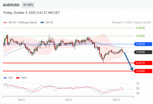 在 0.6610 之下,看跌,目标价位为 0.6575 ,然后为 0.6560 。