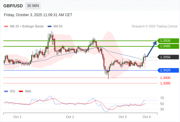 在 1.3420 之上,看涨,目标价位为 1.3485 ,然后为 1.3500 。