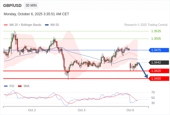 在 1.3475 之下,看跌,目标价位为 1.3420 ,然后为 1.3400 。
