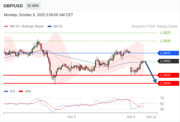 在 1.3475 之下,看跌,目标价位为 1.3420 ,然后为 1.3400 。