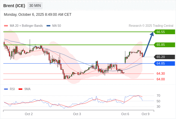 在 64.85 之上,看涨,目标价位为 65.85 ,然后为 66.55 。