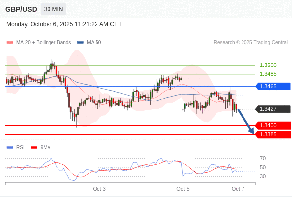 在 1.3465 之下,看跌,目标价位为 1.3400 ,然后为 1.3385 。
