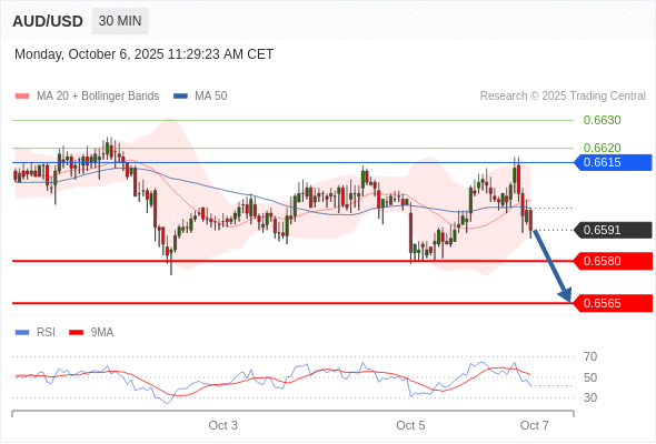 在 0.6615 之下,看跌,目标价位为 0.6585 ,然后为 0.6565 。