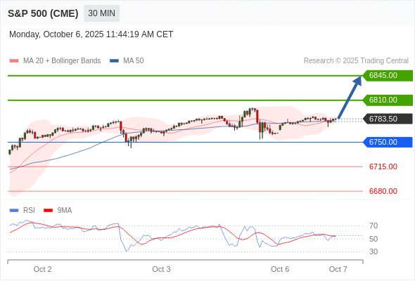 在 6750.00 之上,看涨,目标价位为 6810.00 ,然后为 6845.00 。