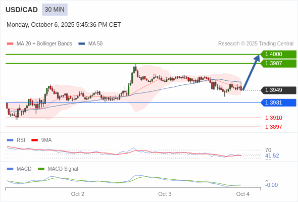 替代方案: 在1.3931以下,期待1.3910和1.3897。