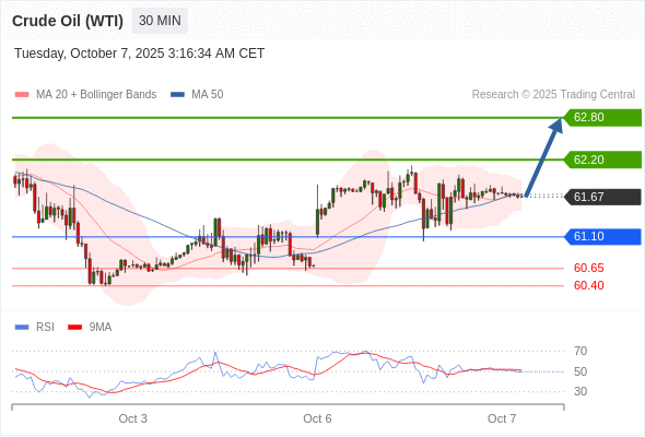 在 61.10 之上,看涨,目标价位为 62.20 ,然后为 62.80 。