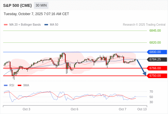 在 6800.00 之下,看跌,目标价位为 6766.00 ,然后为 6750.00 。
