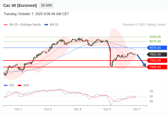 在 8035.00 之下,看跌,目标价位为 7952.00 ,然后为 7909.00 。
