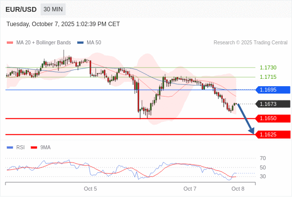 在 1.1695 之下,看跌,目标价位为 1.1650 ,然后为 1.1625 。