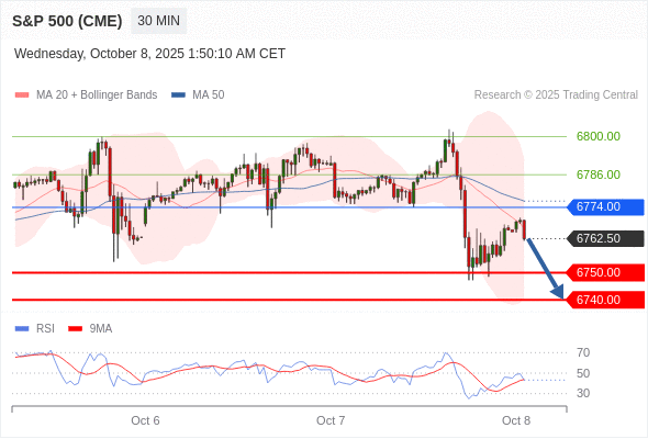 在 6774.00 之下,看跌,目标价位为 6750.00 ,然后为 6740.00 。