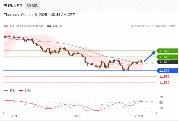 在 1.1600 之上,看涨,目标价位为 1.1645 ,然后为 1.1665 。