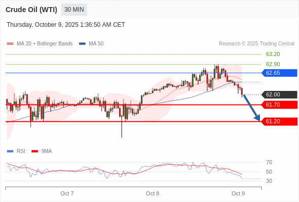 在 62.65 之下,看跌,目标价位为 61.70 ,然后为 61.20 。