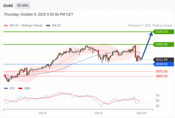 在 3998.00 之上,看涨,目标价位为 4060.00 ,然后为 4100.00 。