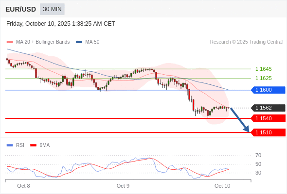 在 1.1600 之下,看跌,目标价位为 1.1540 ,然后为 1.1510 。