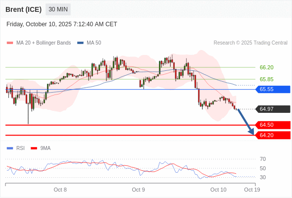 在 65.55 之下,看跌,目标价位为 64.50 ,然后为 64.20 。