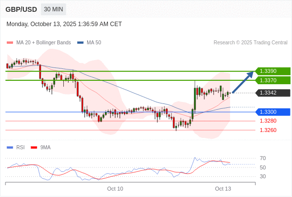 在 1.3300 之上,看涨,目标价位为 1.3370 ,然后为 1.3390 。