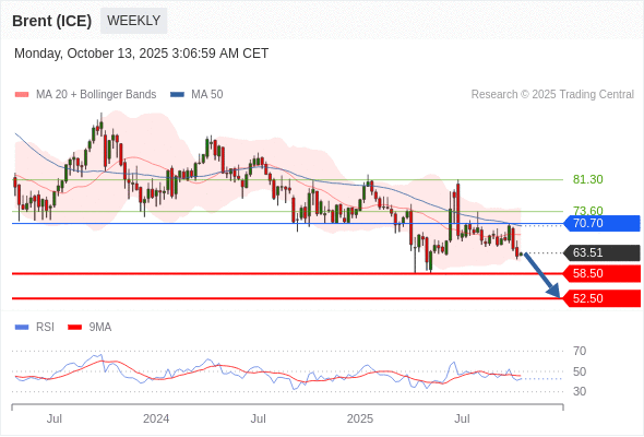 交易策略: 在 70.70 之下,看跌,目标价位为 58.50 ,然后为 52.50 。