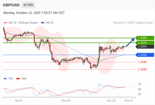 在 1.3320 之上,看涨,目标价位为 1.3370 ,然后为 1.3390 。