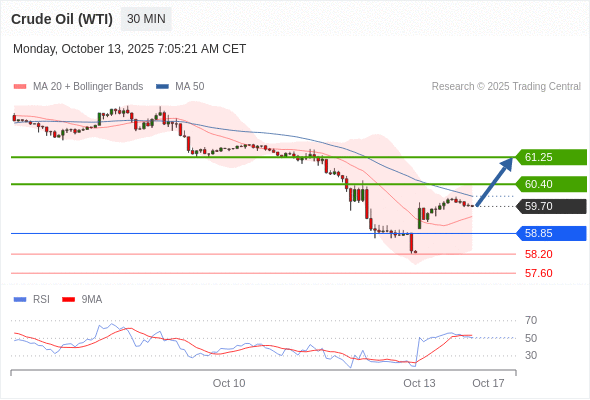 在 58.85 之上,看涨,目标价位为 60.40 ,然后为 61.25 。