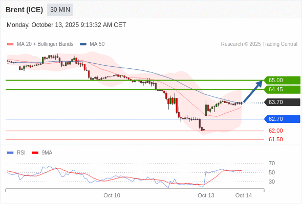 布伦特原油 (ICE) (Z5) 当日内: 目标为65.00。