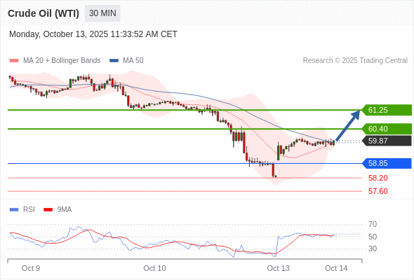在 58.85 之上,看涨,目标价位为 60.40 ,然后为 61.25 。