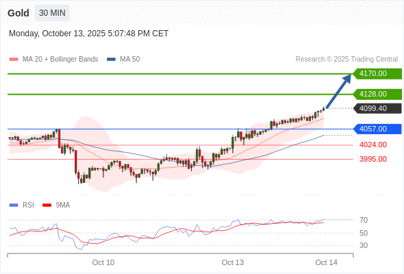 在 4057.00 之上,看涨,目标价位为 4128.00 ,然后为 4170.00 。