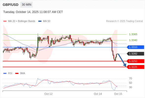 在 1.3365 之下,看跌,目标价位为 1.3250 ,然后为 1.3225 。