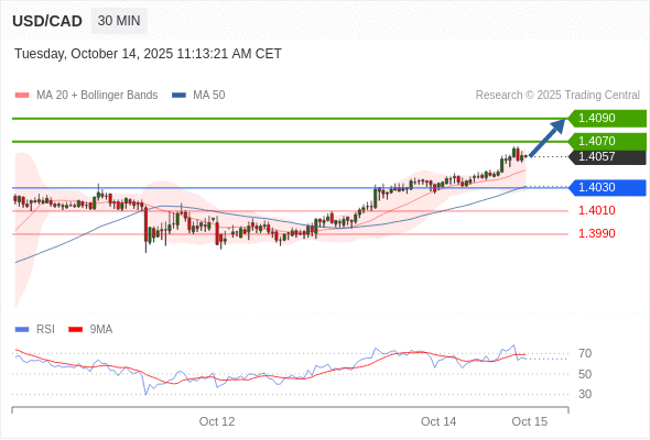 在 1.4030 之上,看涨,目标价位为 1.4070 ,然后为 1.4090 。