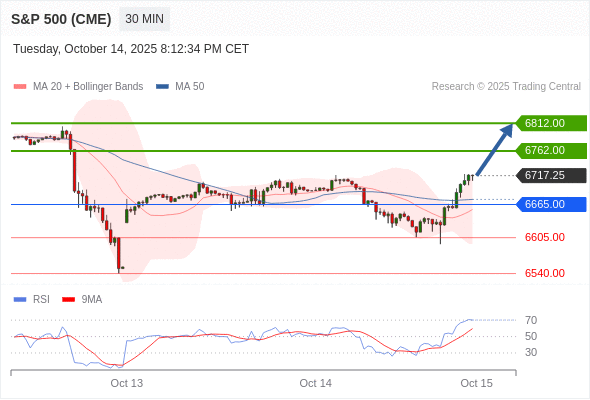在 6665.00 之上,看涨,目标价位为 6762.00 ,然后为 6812.00 。