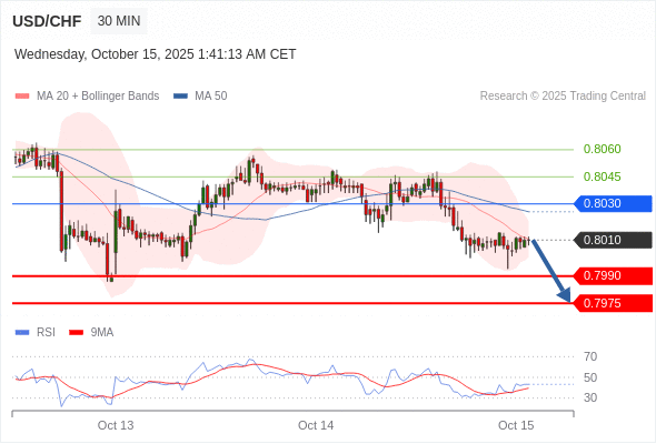 在 0.8030 之下,看跌,目标价位为 0.7990 ,然后为 0.7975 。