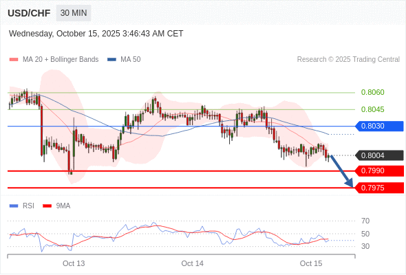 在 0.8030 之下,看跌,目标价位为 0.7990 ,然后为 0.7975 。