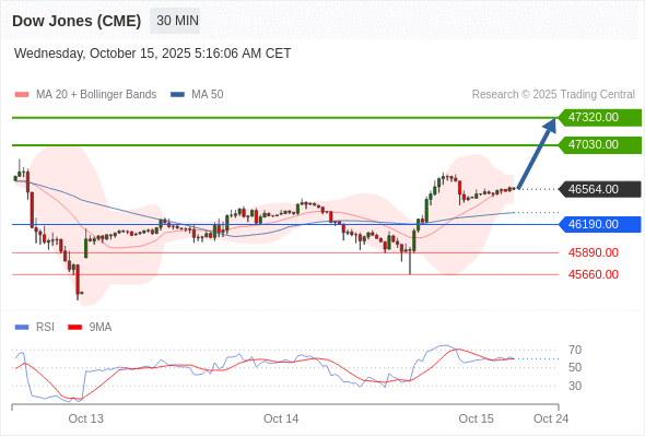 在 46190.00 之上,看涨,目标价位为 47030.00 ,然后为 47320.00 。