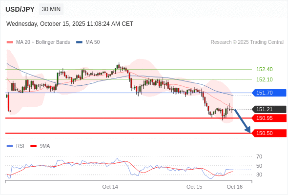 在 151.70 之下,看跌,目标价位为 150.95 ,然后为 150.50 。