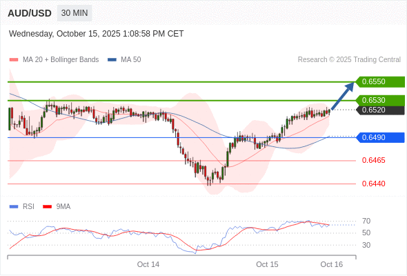 在 0.6490 之上,看涨,目标价位为 0.6530 ,然后为 0.6550 。