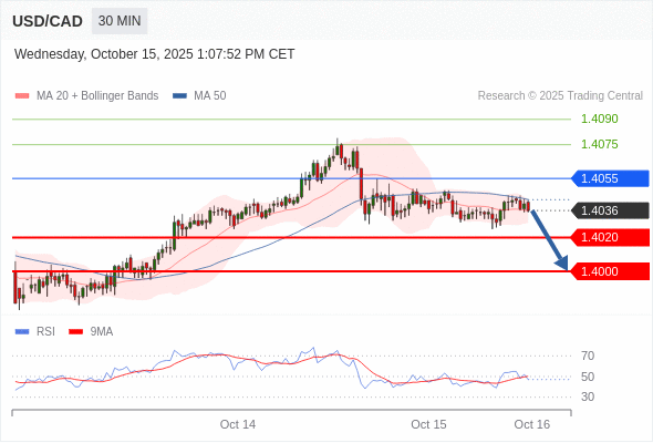 在 1.4055 之下,看跌,目标价位为 1.4020 ,然后为 1.4000 。