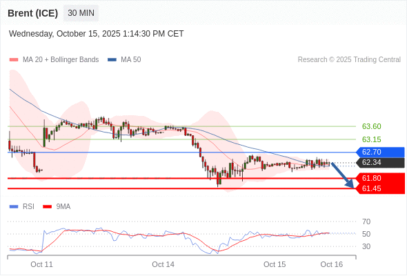 交易策略: 在 62.70 之下,看跌,目标价位为 61.80 ,然后为 61.45 。