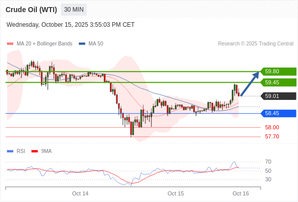 在 58.45 之上,看涨,目标价位为 59.45 ,然后为 59.80 。